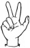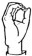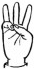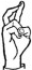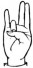 На ћирилици написано РУМЕНА КОЖОВАЦ састоји се из 13 слова [?]. Исписано ћириличном једноручном азбуком за глувонеме: